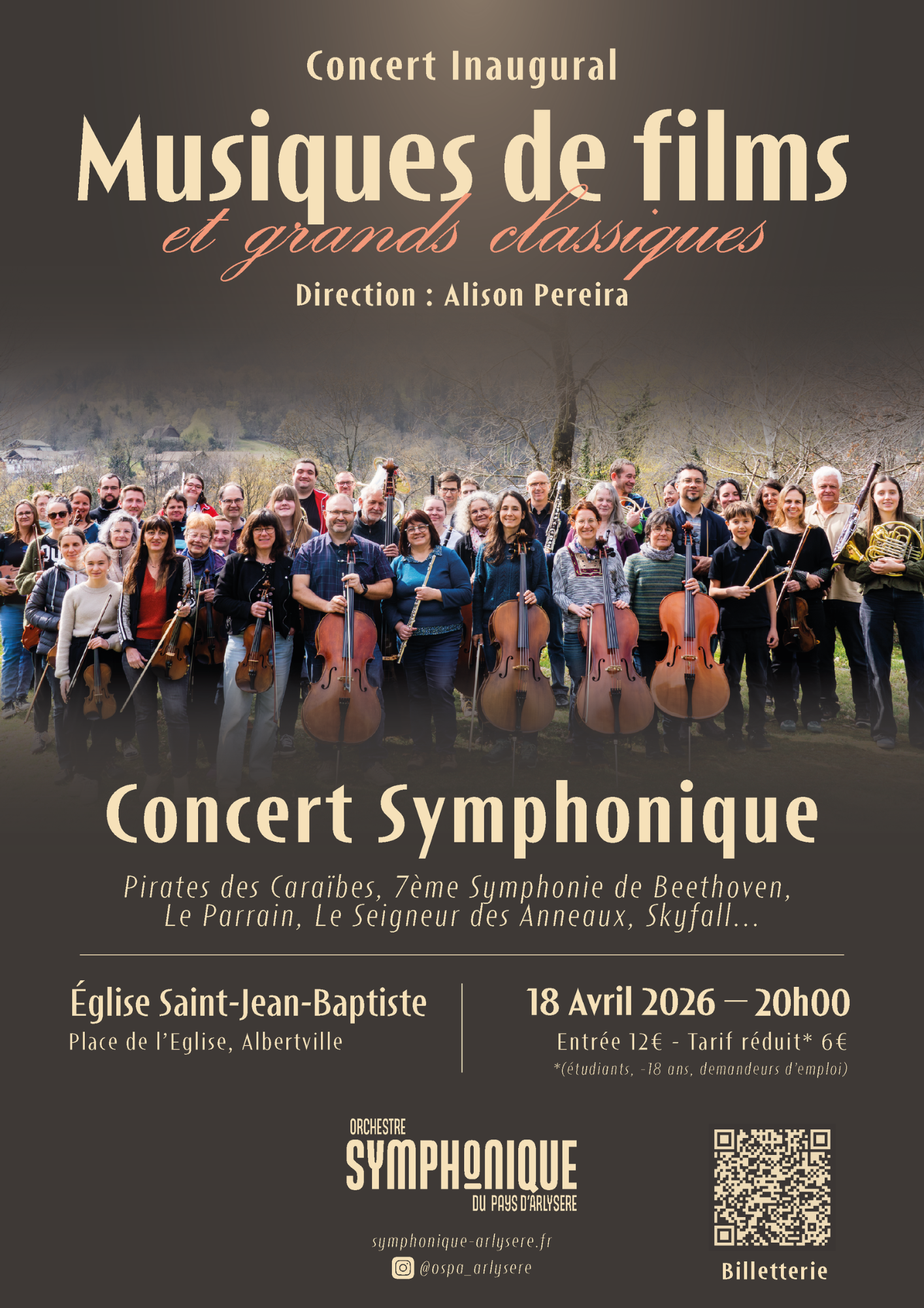 L’Orchestre Symphonique du Pays d’Arlysère vous plonge dans un univers musical riche en émotions, où se rencontrent chefs-d’œuvre du répertoire et grandes musiques de films : Pirates des Caraïbes, Le Parrain, Le Seigneur des Anneaux, Skyfall… parmi d’autres œuvres, dont la vibrante 7ᵉ Symphonie de Beethoven.